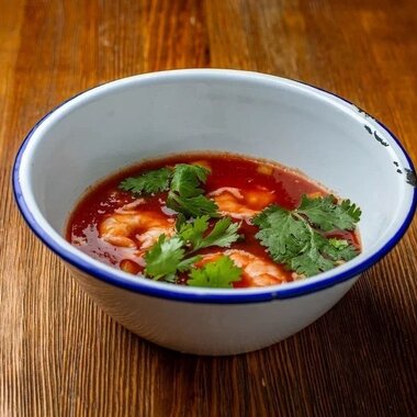 Холодный томатный суп с креветками
