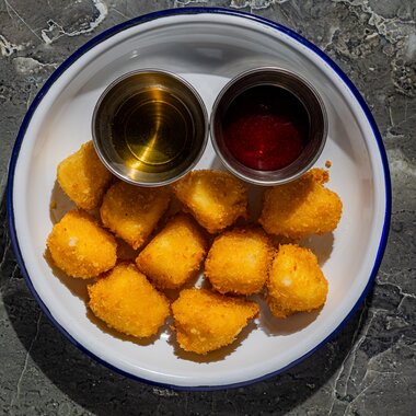 Жареный сулугуни с медом и клюквенным соусом