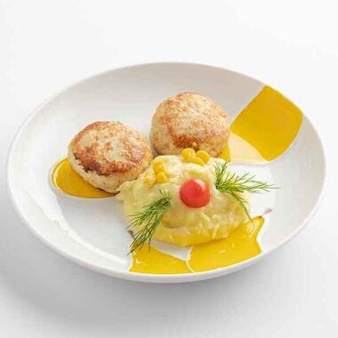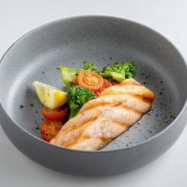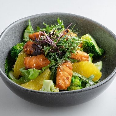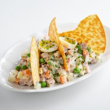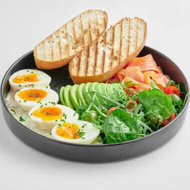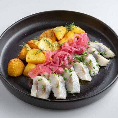 Лосось слабой соли с картофелем айдахо и домашними огурцами