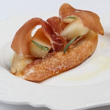 Чикетти с уткой магре, страчателлой, эстрагоном и инжиром