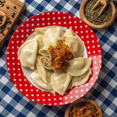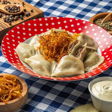 Вареники из трёх видов мяса с мясной поджаркой ммм пальчики оближешь