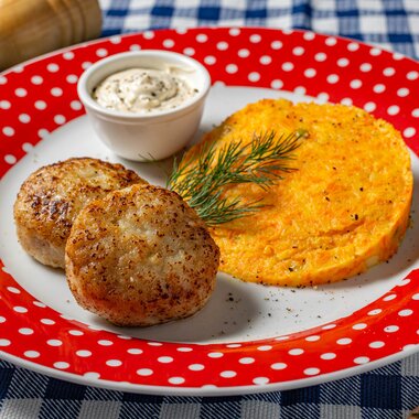 Куриные котлетки с сыром и пюре Зайчишка (детское)
