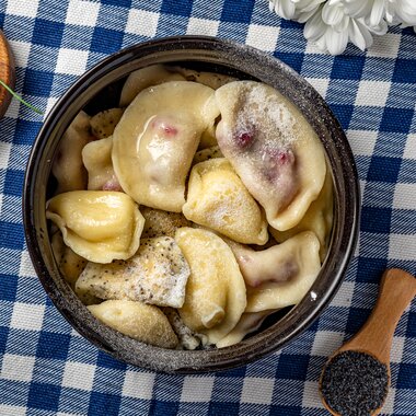Вареники маковые с творогом и курагой