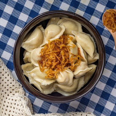 Вареники по-белорусски с грибной поджаркой