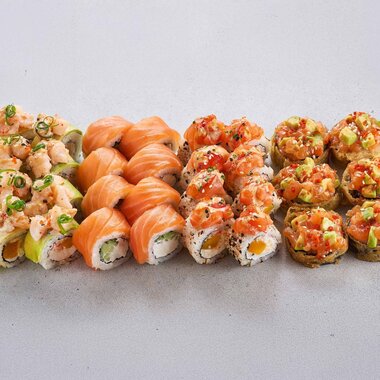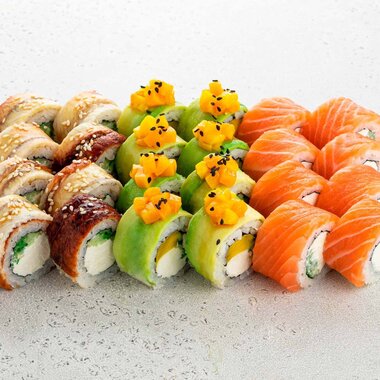 Обращаем внимание, что Соевый Соус, Имбирь и Васаби необходимо добавить в корзину отдельно!