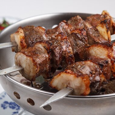 Говяжий язык на гриле с гурийской капустой и цицмати