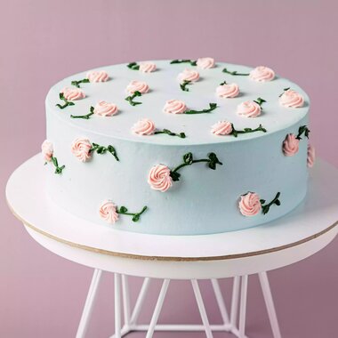 Торт «Цветочная поляна» в голубом
