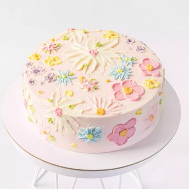 Торт «Цветочная поляна» в розовом